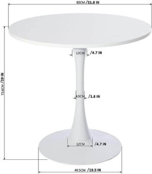 Dining Table Round Kitchen Table with Gloss Steel Tube and Base