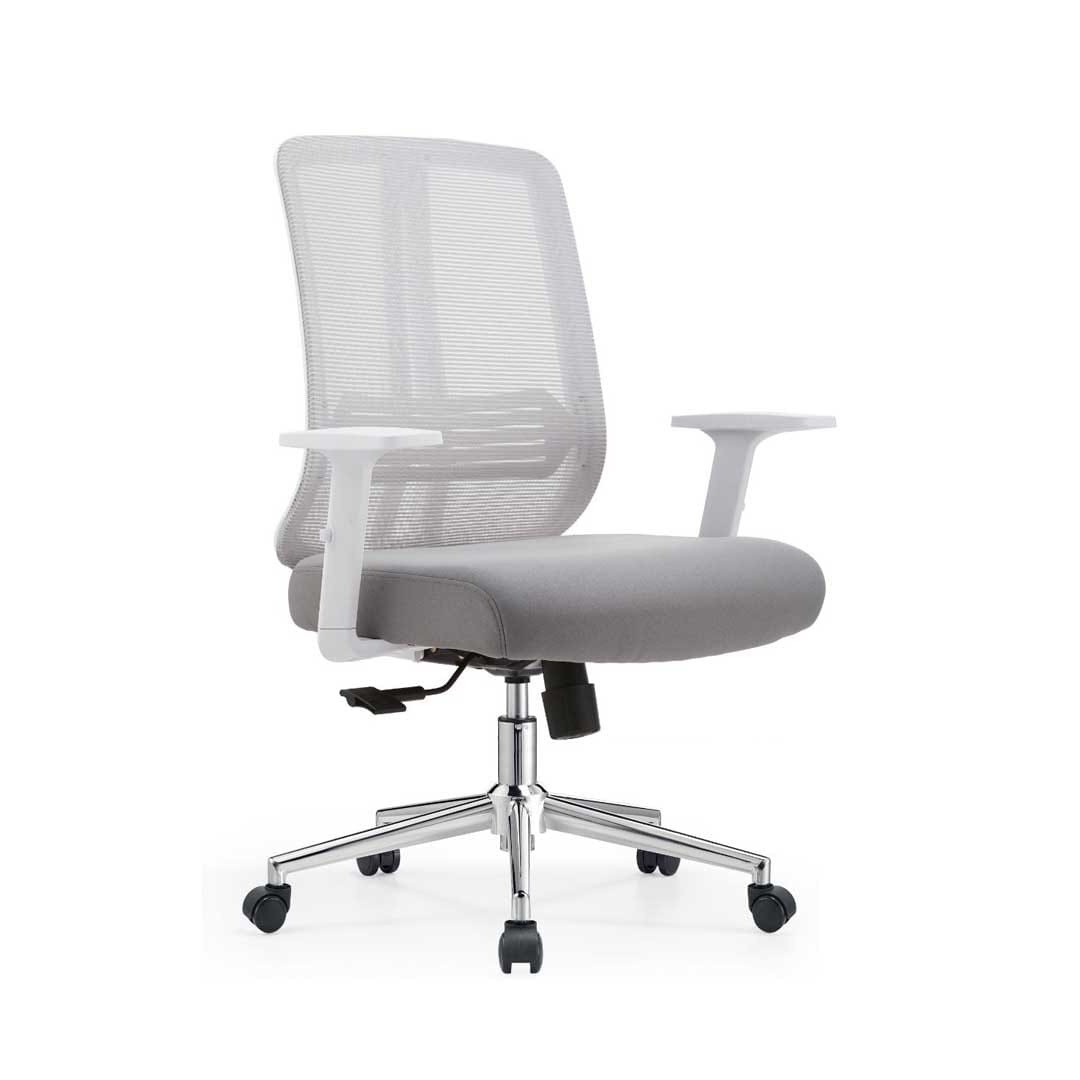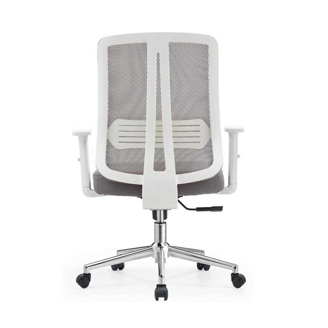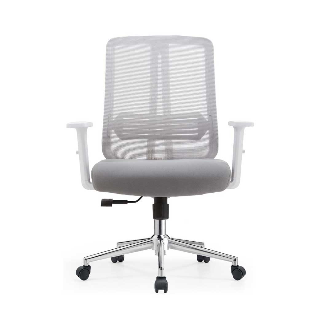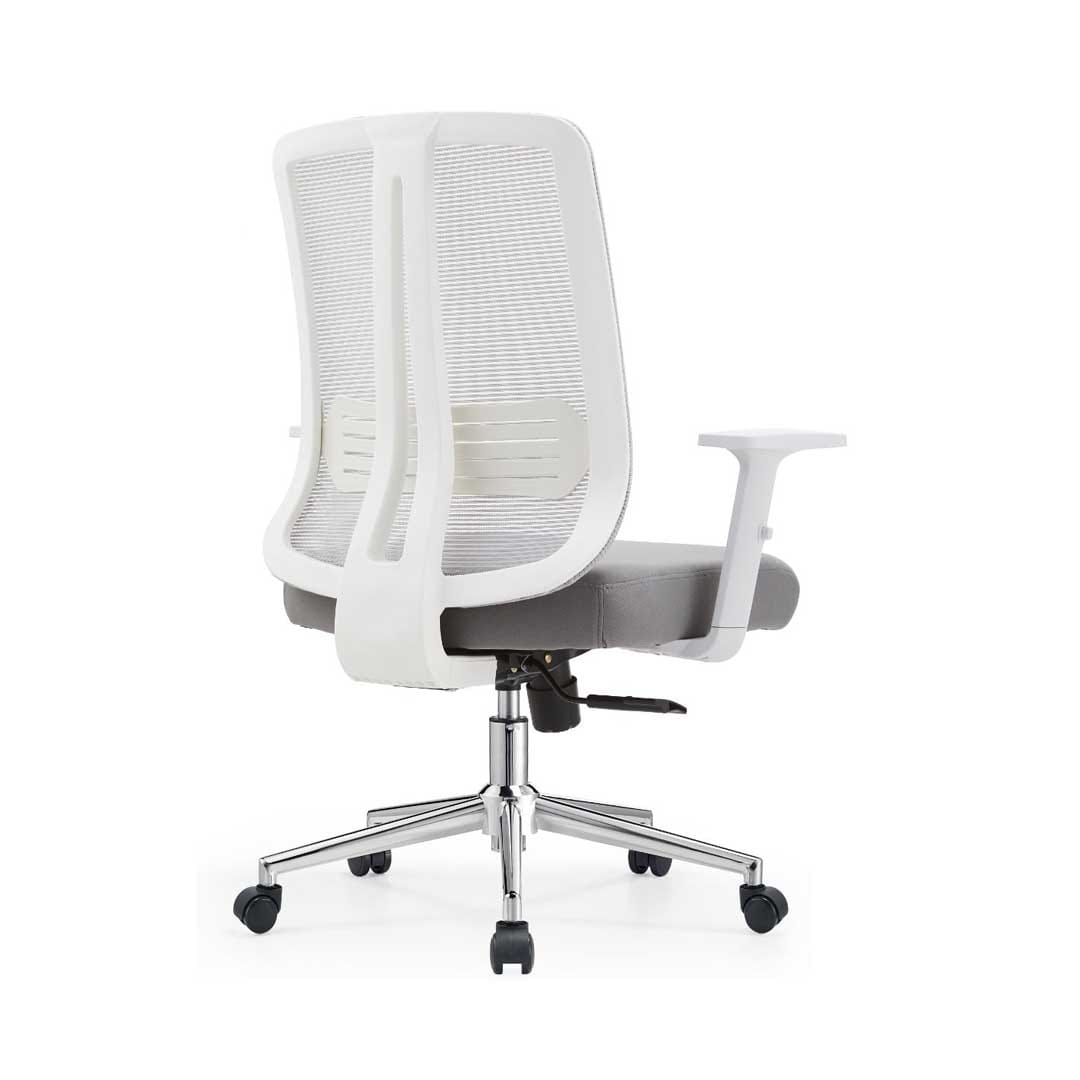 The Ergonomic Mesh Medium-Back Office Chair White combines comfort, function, and modern style for professional workspaces in Ajman. Designed with a breathable mesh back and cushioned seat, it offers firm lumbar support and long-lasting comfort for everyday use. The smooth-rolling wheels, adjustable height, and polished chrome base make it perfect for both home and office environments. Its clean white design brings a fresh, minimal look that suits any modern workspace.