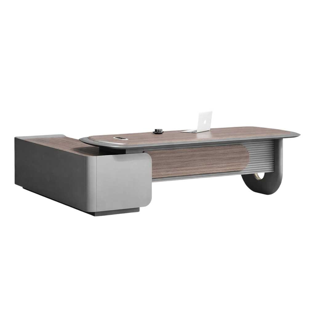 Moreover, the Luxury Executive Office Desk Tabletop Curved Dark Walnut is made from high-quality materials. Therefore, it delivers excellent durability and long-term performance. The surface resists scratches and maintains its premium appearance over time.